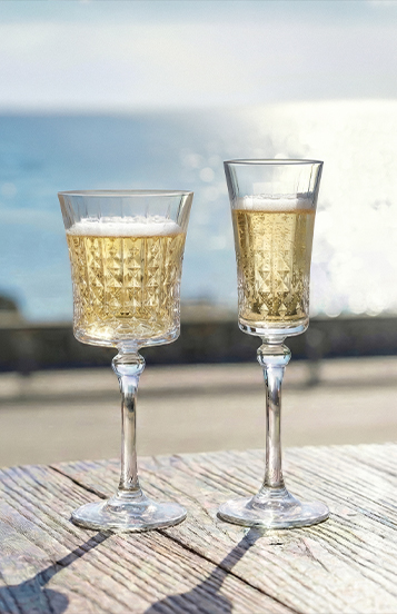 Diseño retro con grabados geométricos en material irrompible ECOZEN, ideal para piscinas, exteriores y zonas donde el vidrio no es viable. - Rosenthal – Sonetto